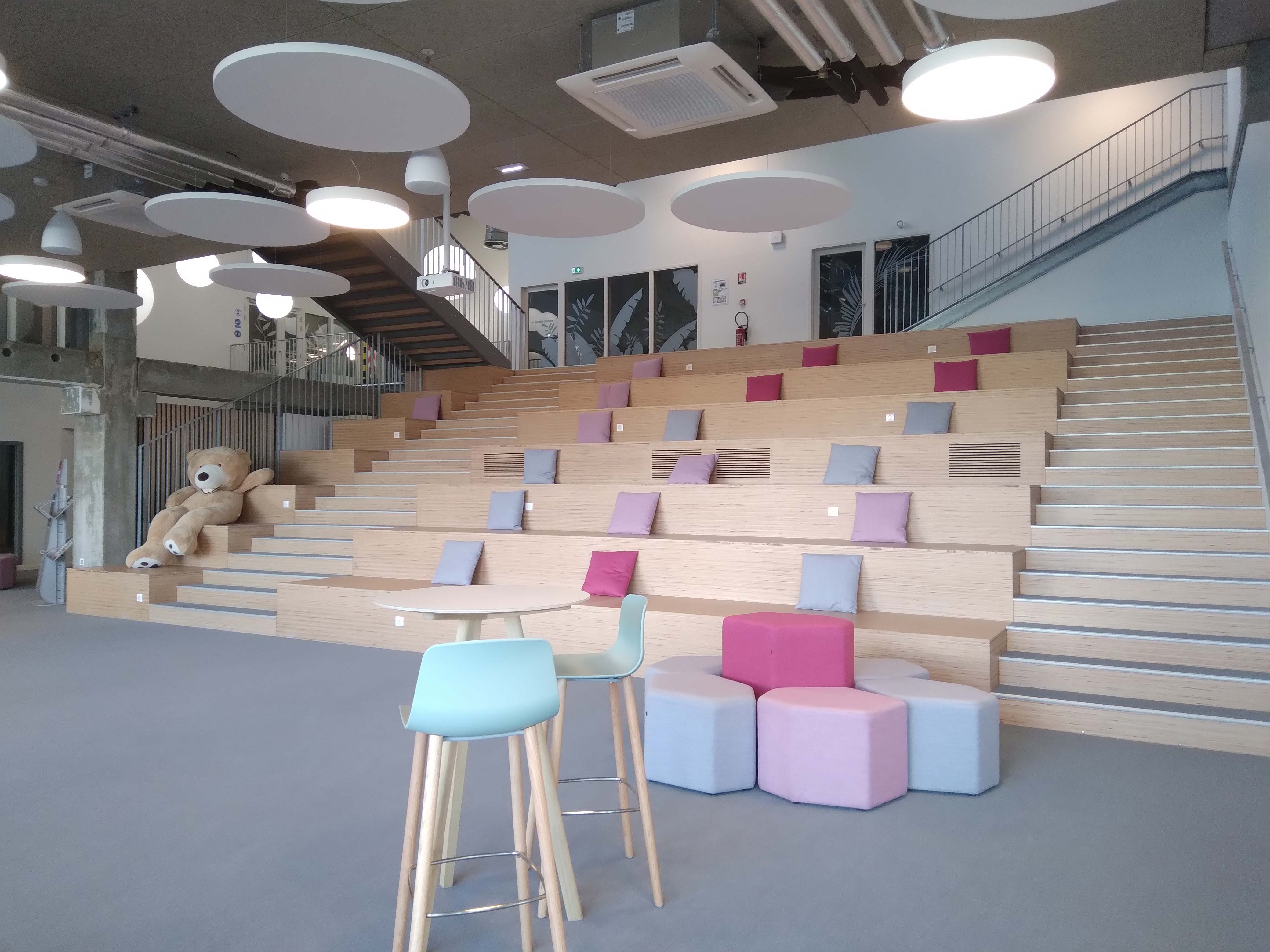 Habillage de gradins en panneaux multilignes - Haïku Architecture, l'Union