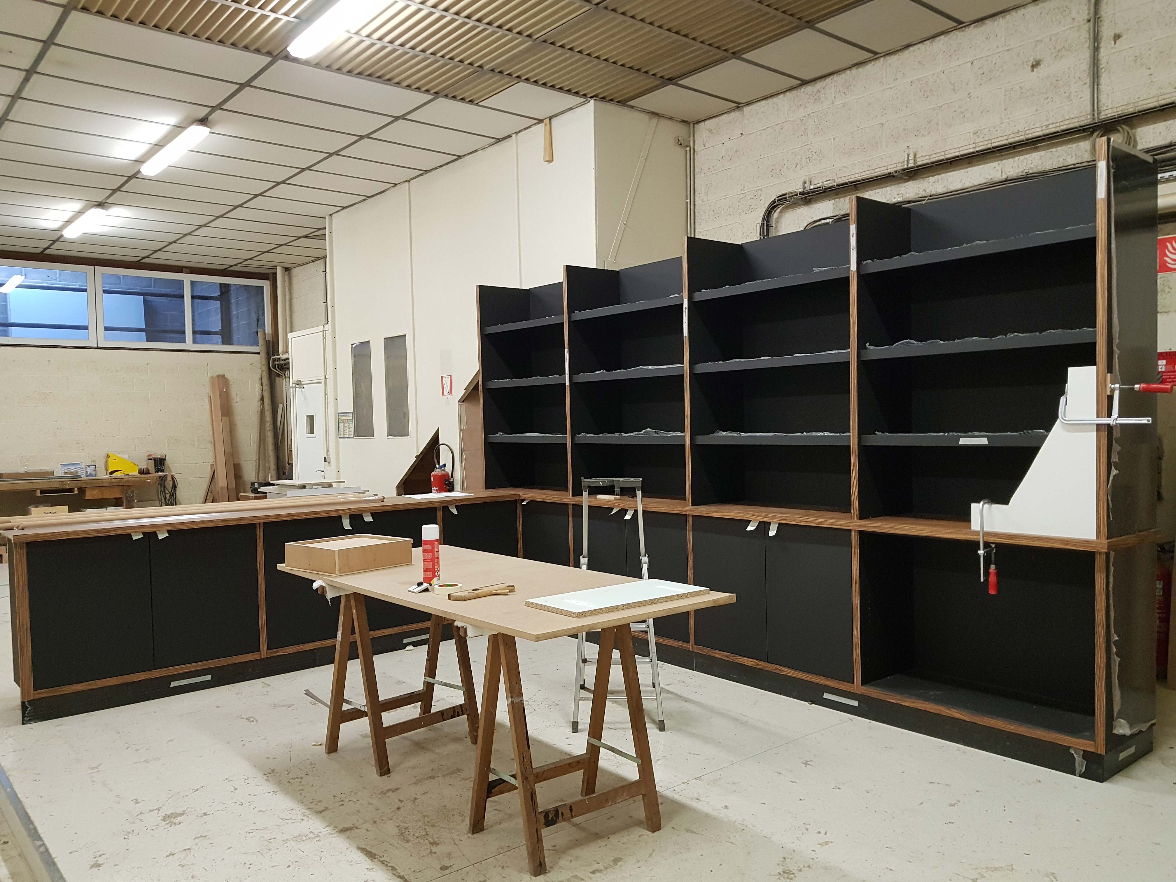 Comptoir et meubles de présentation d'une boutique "Cave et terroirs"